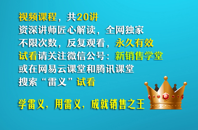 您的位置 首页 销售课程 销售牛人密码:空客雷义的18条销售军规 高讲师 发布于 2019年12月5日 阅读(9,784) 请注意:现在不用单独订阅本课程了,因为高讲师的9个顶级销售赋能课程现在打包订阅,原价980元,现在1折订阅,只需98元。