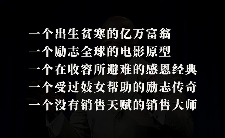 一个出生贫寒的亿万富翁,一个励志全球的电影原型,一个在收容所避难的感恩经典,一个受过妓女帮助的励志传奇,一个没有销售天赋的销售大师……